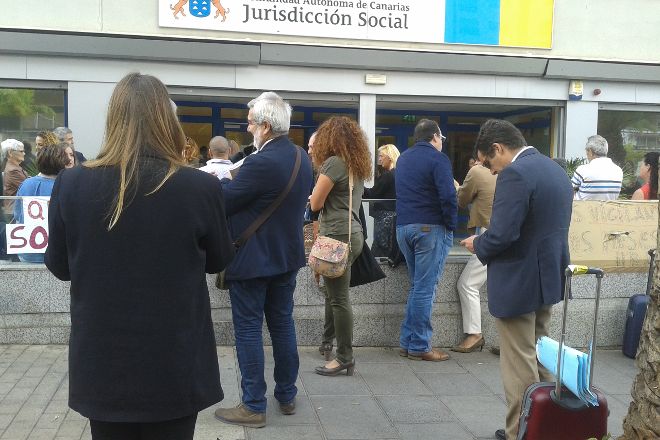 David Ortuño, explicó ayer que, a las 7:45 horas, «me avisaron de que no había seguridad y de que estaba cerrado el acceso, por lo que me personé aquí y me puse en contacto con la Dirección General de Justicia». Ortuño también informó de la situación al presidente de la Audiencia Provincial y al Tribunal Superior de Justicia de Canarias (TSJC). Comentó que ayer no era sencillo saber el número de juicios que quedaron suspendidos, tras más de tres horas y media de retraso en la apertura de las puertas. En cualquier caso, el miembro de IC señaló que se ha visto perjudicada gente que «vino del Sur de Tenerife», por ejemplo. La situación registrada en la Jurisdicción Social de Santa Cruz de Tenerife y parcialmente en el Palacio de Justicia de la capital tinerfeña puede considerarse una coincidencia o no. Sin embargo, algunos afectados ayer por las bajas laborales comentaron que se trata de una «huelga encubierta» del personal de SIC, que está cansado de trabajar sin cobrar o con serios retrasos. Situaciones similares se han vivido recientemente en los juzgados de La Orotava, en Arona, en el Puerto de la Cruz o en las dependencias del edificio El Cabo, también en Santa Cruz de Tenerife. Hubo un momento en que en el control de seguridad del Palacio de Justicia de Santa Cruz de Tenerife únicamente estaban la responsable del servicio de Seguridad y el presidente de la Audiencia.